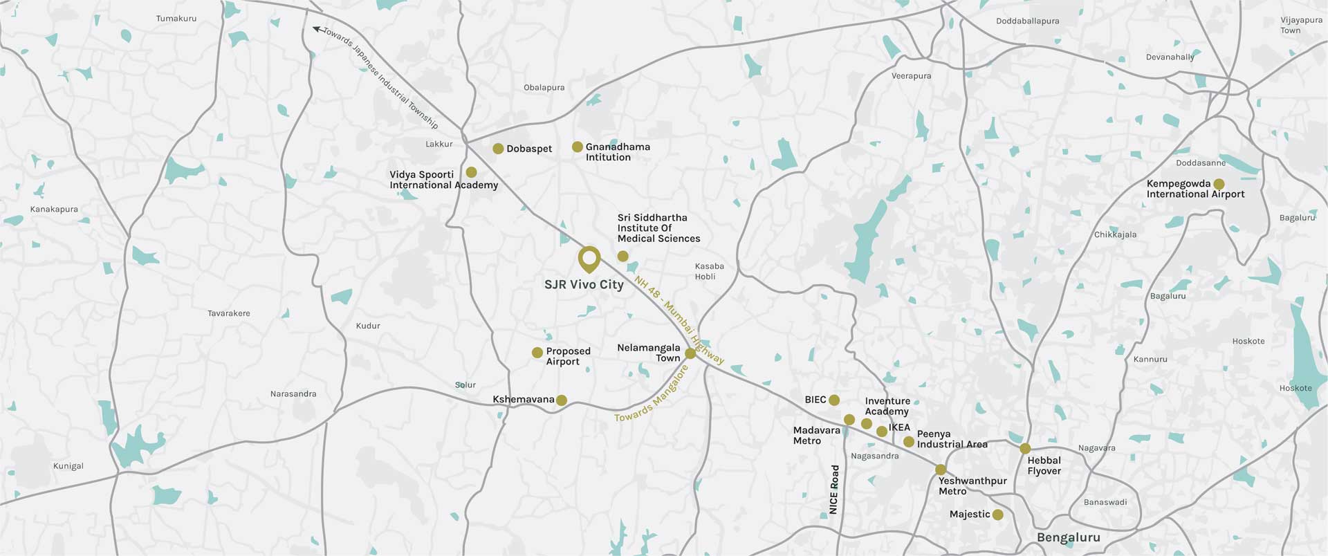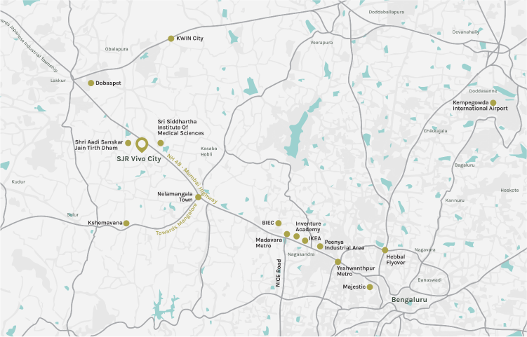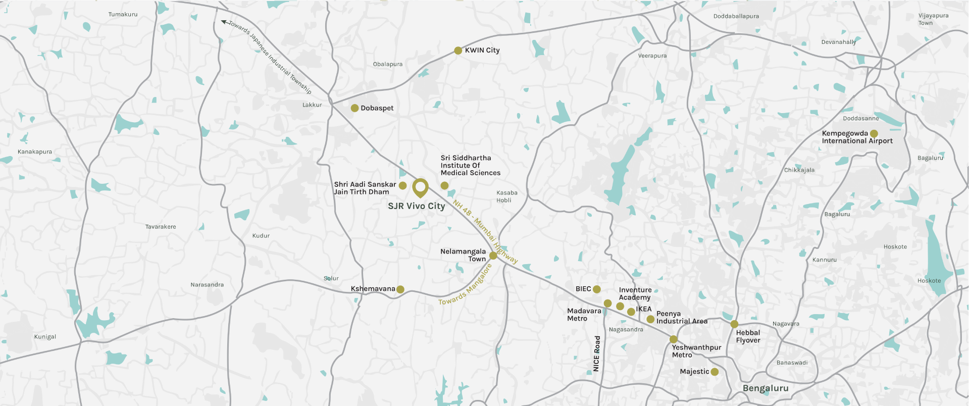 Just minutes away from NICE Road, Vivo City offers residents effortless connectivity to Mysore Road, Bannerghatta Road, Kanakapura Road, and Hosur Road. And located near the upcoming International Airport and the 5,500-acre KWIN City, a government-planned hub for knowledge, innovation, and technology, it presents a prime investment opportunity.